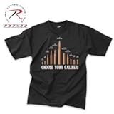Rothco , Let everyone know how you feel with this vintage style t-shirt, made of super soft washed cotton/polyester blend material in black. The front showcases the slogan "CHOOSE YOUR CALIBER!" with a series of bullets printed on it as well. Available in sizes L, 1XL, and 2XL. ...