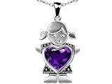 2.00 cttw Little Girl Holding Heart Mother Birthstone Pendant with Genuine Amethyst in 925 Sterling Silver