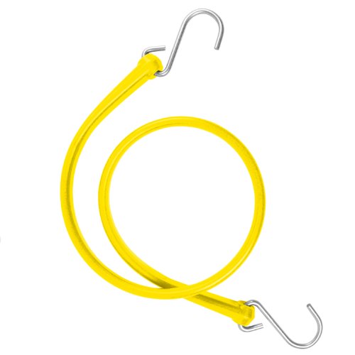 The Perfect Bungee B36Y, The perfect bungee 31-inch strap is made of a special polyurethane formula (no rubber/no latex) that's built to last. It won't crack, break, split, become brittle or scuff, and can withstand exposure to salt water, oil, ozone, and many common household chemicals. The super-strong, flexible polyurethane material allows for a safe stretch up to twice its original length and features excellent memory retention. A galvanized steel s-hook completes the strap at both ends. The perfect bungee strap won't wear out or lose its shape. It can be used in an endless variety of both light and heavy-duty applications and is available in several shapes, sizes, lengths and colors. The perfect bungee strap is proudly manufactured in the USA.