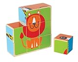 Hape International HAP-E0421AE, This nine-block puzzle challenges kids to re-create six familiar animals. But it's not always a 3x3 square shape: the giraffe puzzle is tall; the alligator is long. ...